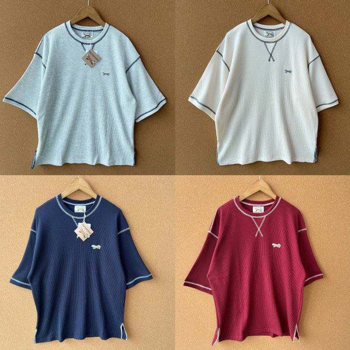 A3-157日系可爱刺绣小狐狸华夫格短袖T恤套头宽松休闲简约Y25-9