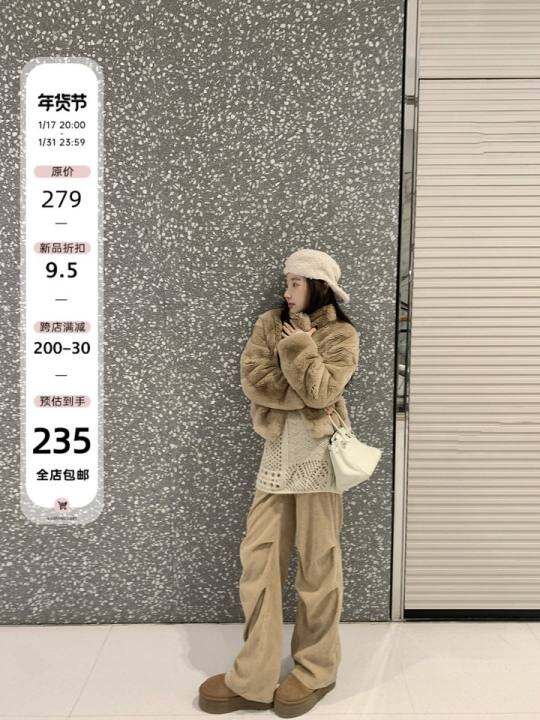 1/17 20:00上新 Ga*水洗工艺面料 压褶时髦条绒裤休闲裤 松紧腰