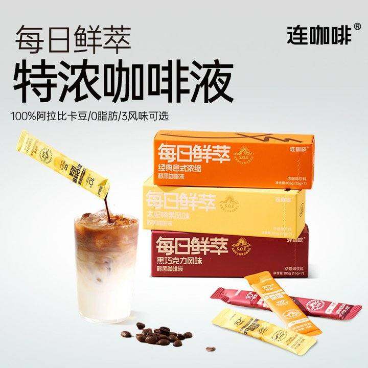 连咖啡15g*21条浓缩咖啡液黑咖啡拿铁原味0糖0脂