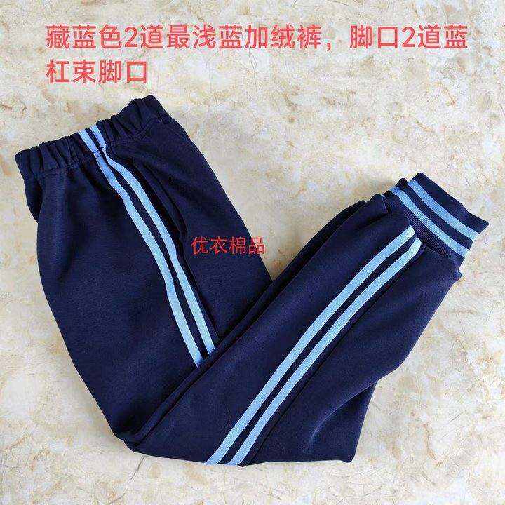 秋冬加绒加厚中小学生校服裤子藏蓝色2道浅蓝杠宽松弹力运动裤