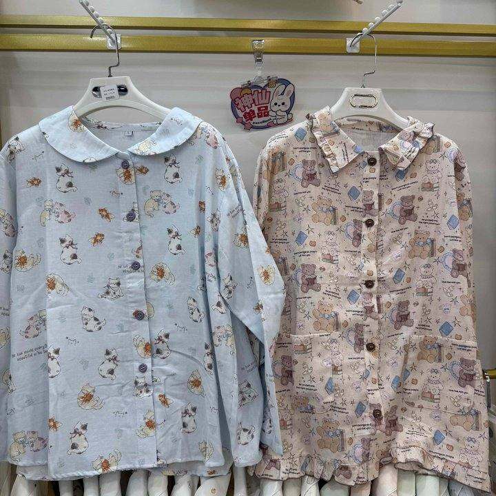 买的是花色均码,比蓝色款尺寸要大一下.这家是直播的,平时播鞋子。他们家换季清仓的鞋子划算的不要不要的。不过早买早享受也是真的。这个纯棉睡衣打算生完宝宝,等后期温度降一点和家里现成的换着穿穿。有厚度的纯棉,很舒服