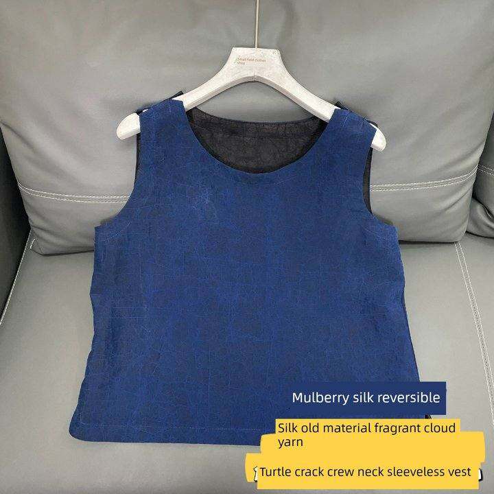 蓝龟+黑龟~非遗老料~桑蚕丝双面穿香云纱龟裂纹圆领无袖背心