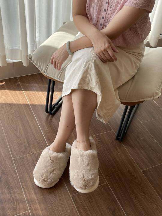 外贸余单彷大兔毛绒棉拖鞋男女冬季室内家居情侣厚底保暖加绒防滑