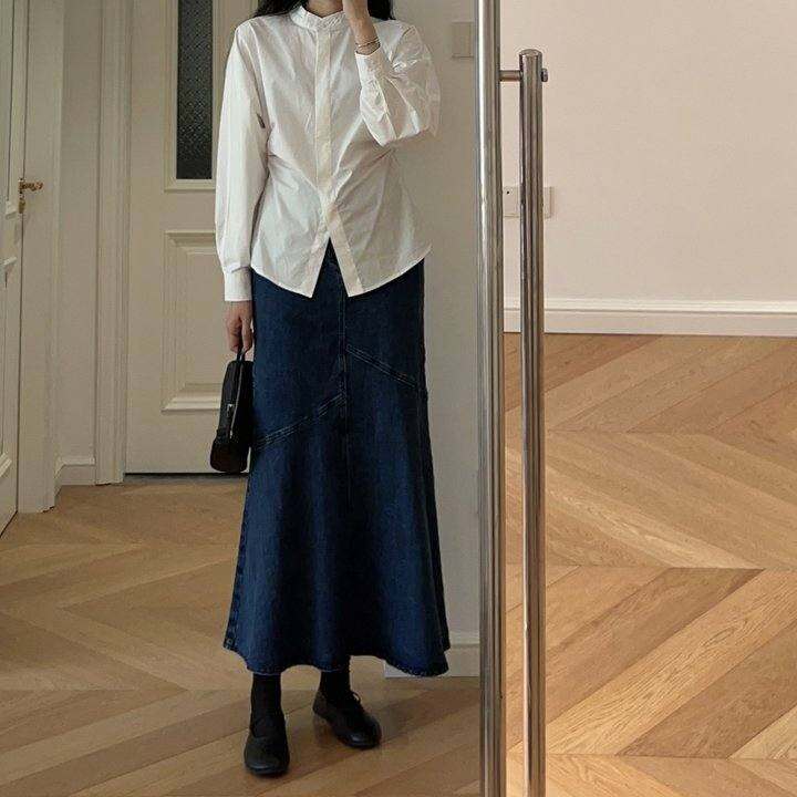 秋冬新款 港风覆古中高腰牛仔半身裙过膝长裙鱼尾裙 0.73KG