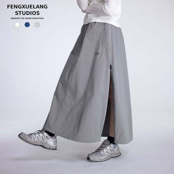 明星同款FENGXUELANGa字防晒半身裙女运动双拉链长裙降落伞裙