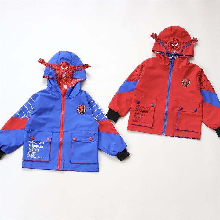 内单春秋新款男童双面穿卡通立体造型蜘蛛侠连帽夹克休闲风衣外套