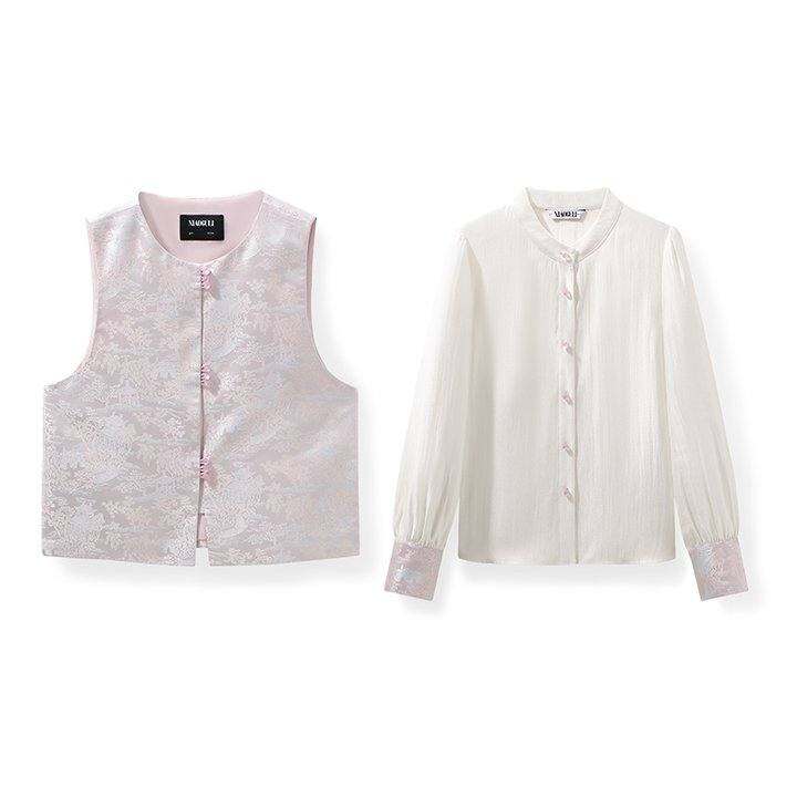 小谷粒金粉世家套装 新中式国风两件套女春季款圆领衬衫提花马甲