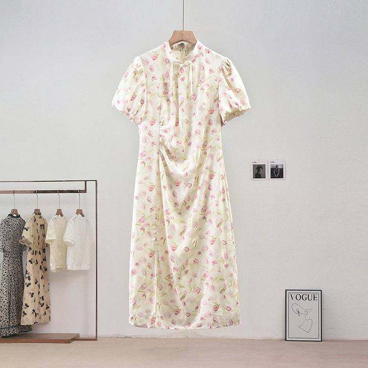 宠粉Te供显瘦长版高质感中式旗袍裙2025夏碎花减龄短袖开叉洋装