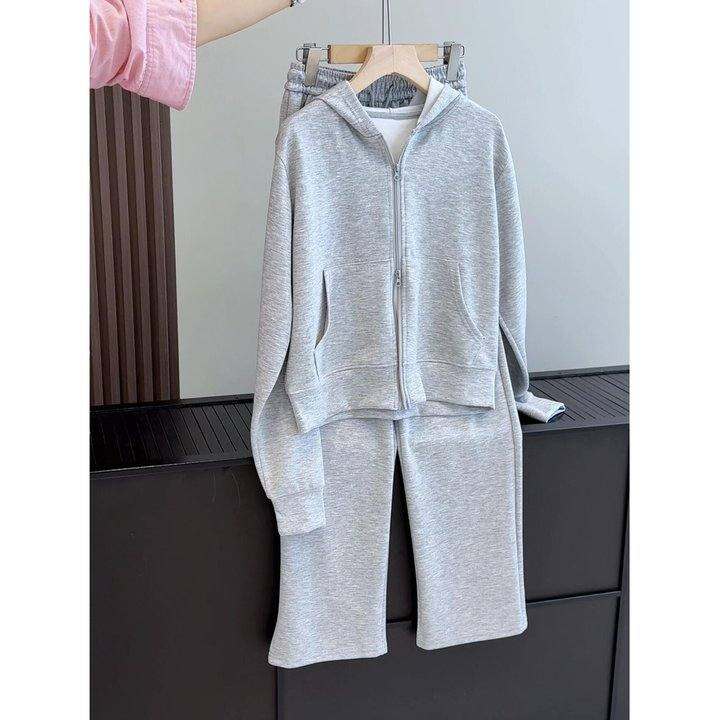 空气层 高级感时尚套装女春秋小个子连帽卫衣阔腿裤休闲两件套