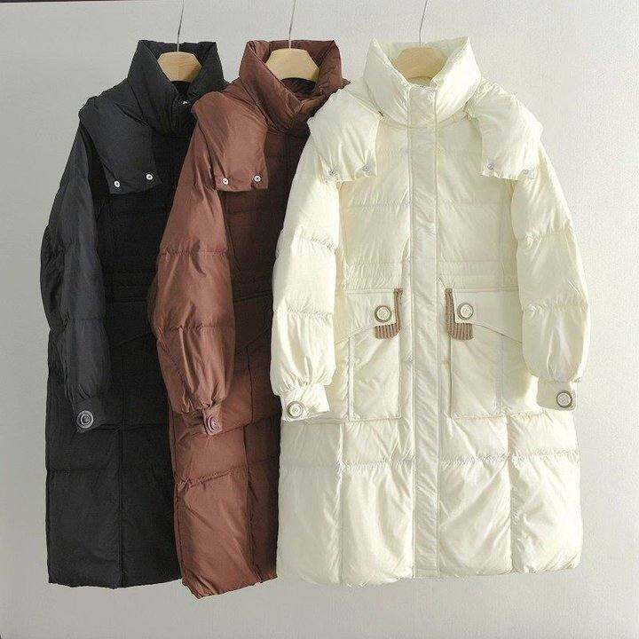 立领连帽羽绒厚外套女冬季2025新款韩版宽松显瘦设计感长款面包服