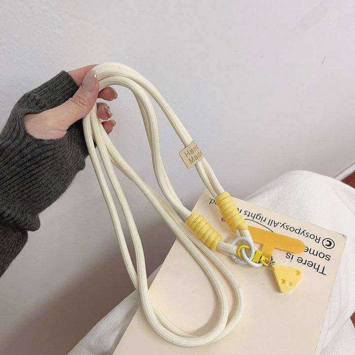 长款浅色手机壳斜跨绳卡通黄色芝士挂件吊坠挂脖挂肩背带手机挂绳