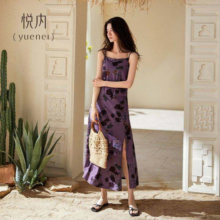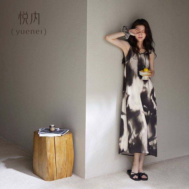 悦内带胸垫睡裙女睡衣夏季冰丝绸性感吊带裙夏款仿真丝夏天水墨画