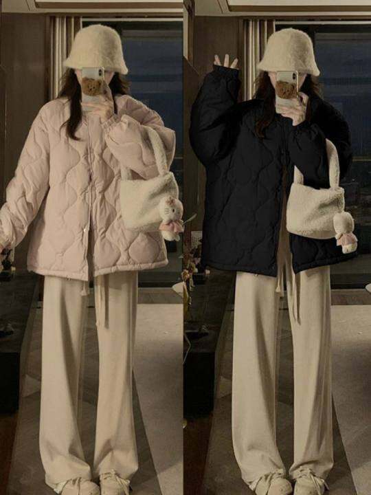 大码胖mm2024年冬季新款宽松慵懒风菱格棉服女显瘦小个子棉衣外套