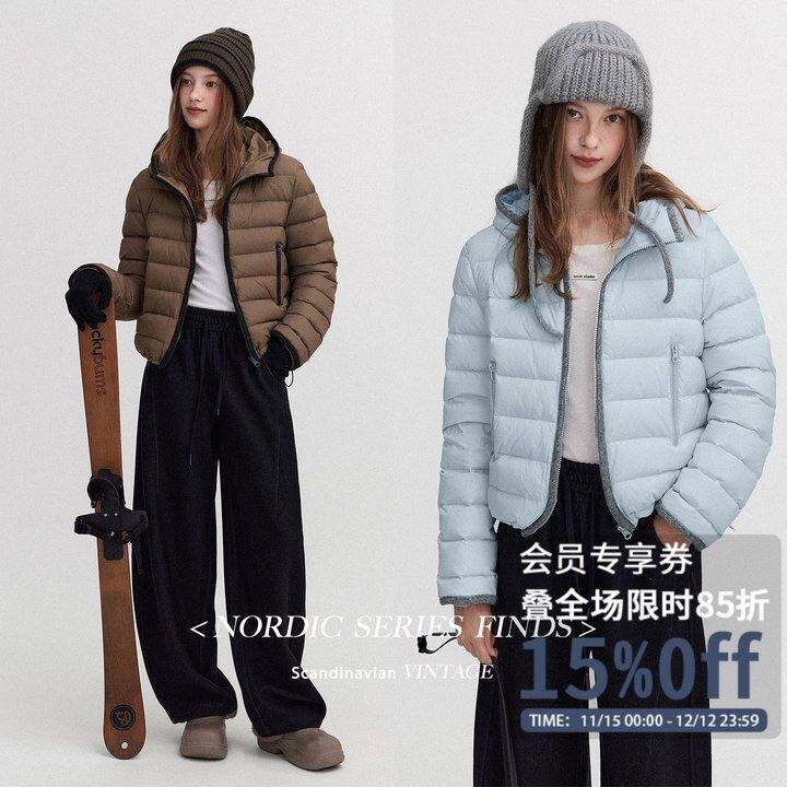 Letm 冰岛island’可溯源90白鸭绒短款连帽拼接针织排骨羽绒服女
