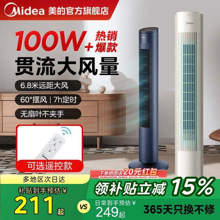 【国补15%】美的塔扇25升级款电风扇家用无叶风扇轻音塔式落地扇