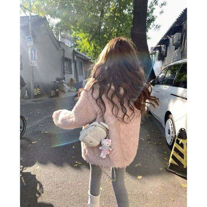 @粉嫩小湖羊超漂亮!糯叽叽羊羔毛环保皮草毛毛外套