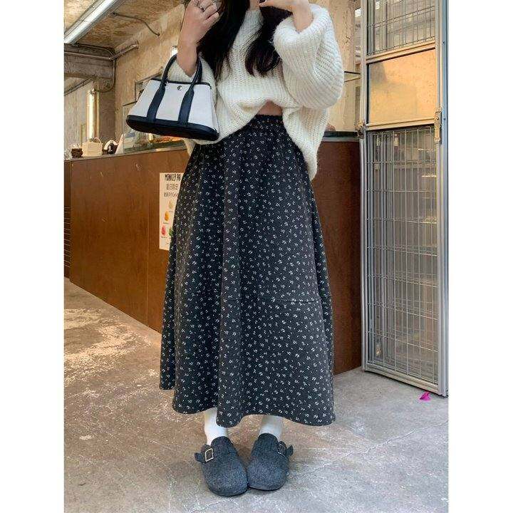 洋气碎花加厚中长款半身裙女秋冬2025新款设计感显瘦高腰A字伞裙