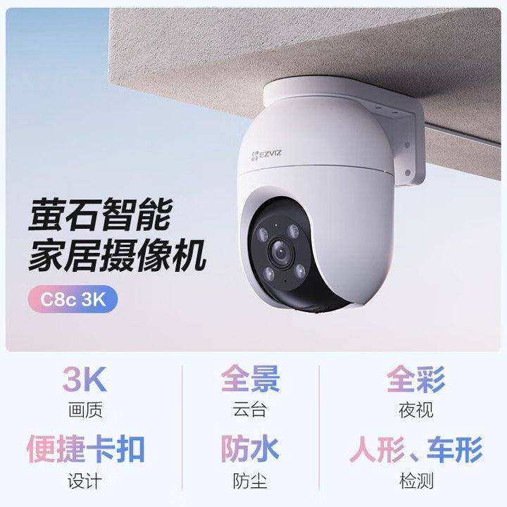 监控还得买海康威视的,萤石c8c 500万像素,3k画质,128G内存拼多多敲金蛋游戏给了20券,最后到手241元。有人形检测,可以双向语音,画质很清晰,放家里监控宠物很方便