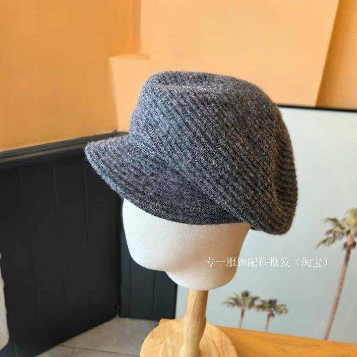 日系简约羊毛针织八角报童帽女秋冬复古时尚保暖软檐显脸小画家帽