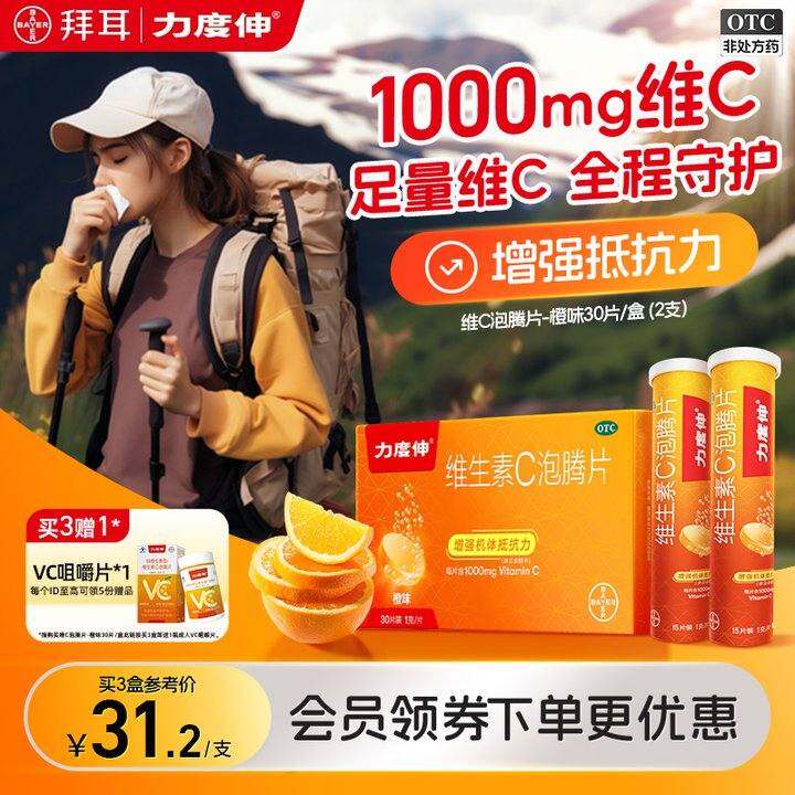 拜耳力度伸维生素C泡腾片预防感冒维C增强免疫OTC VC片橙味旗舰店