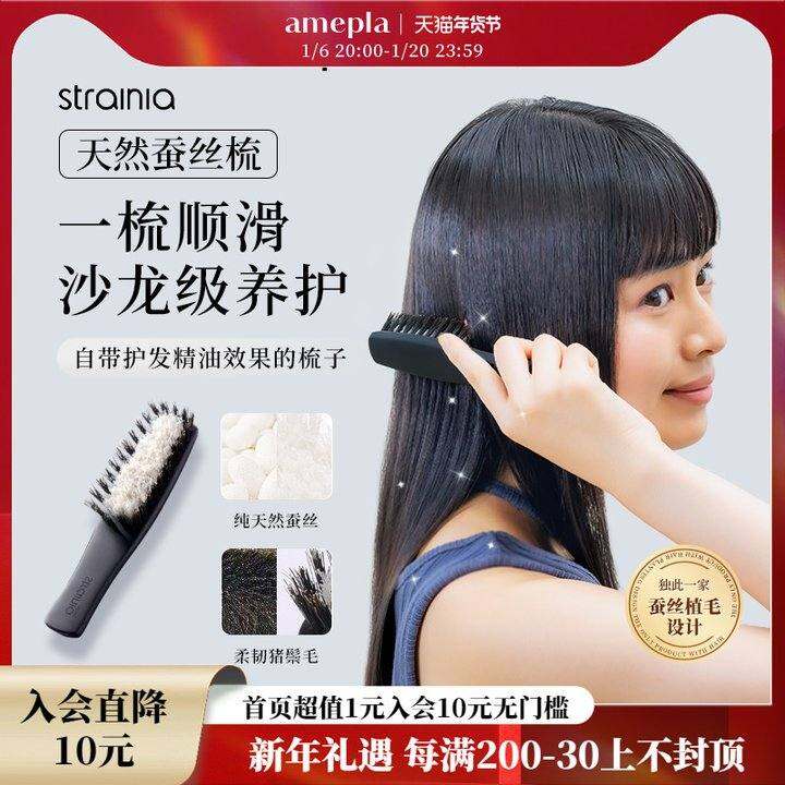 strainia天然蚕丝梳猪鬃毛养发护发亮泽顺发精油理发抚平毛躁脱发