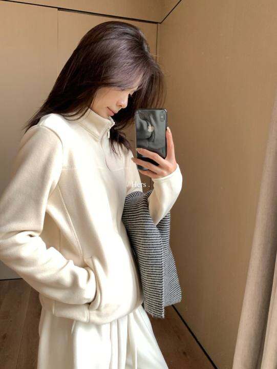 Hers冬季加厚保暖休闲外套女简约日常百搭厚实保暖立领夹克女