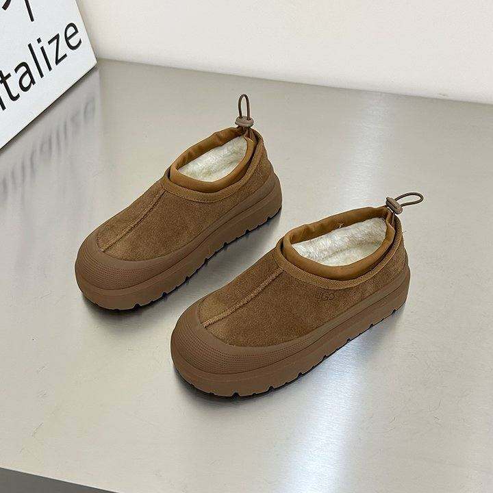 真皮加厚低帮雪地靴女2024冬款厚底圆头面包鞋洋气保暖松紧口棉鞋