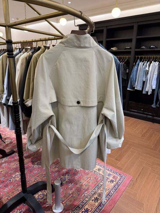WEKNOW韩国货高品质立领中长款风衣外套女新款一粒扣系带收腰气质