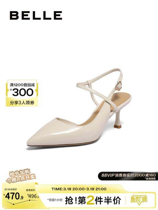 百丽法式尖头细高跟鞋子包头凉鞋2024夏季新款优雅单鞋3Y6E7BH4