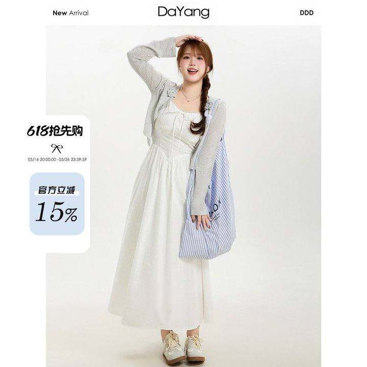 120斤的大杨 白色吊带裙春夏小个子微胖收腰显瘦小白裙度假连衣裙