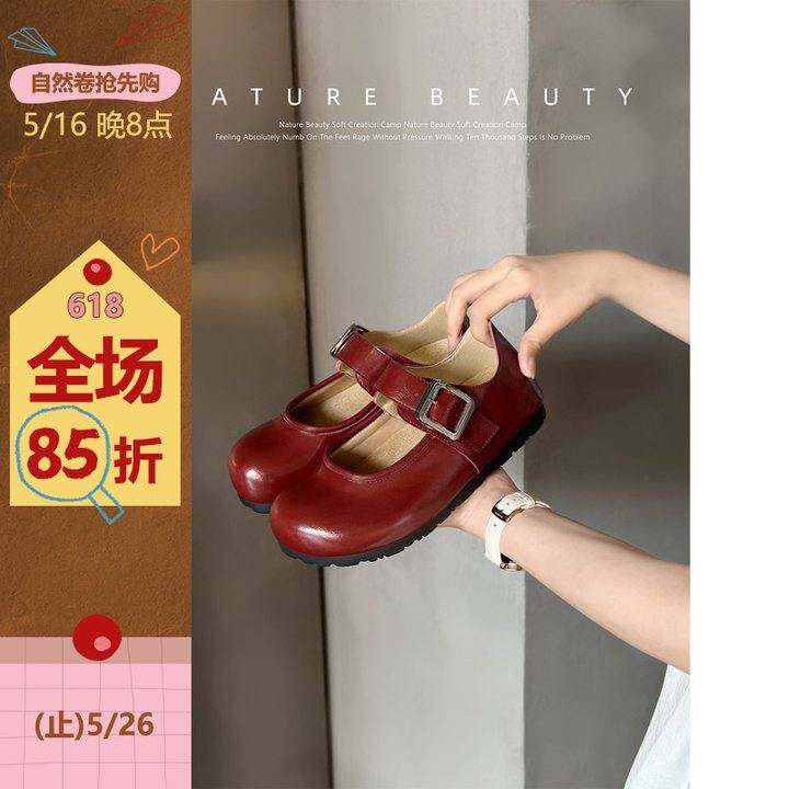 自然卷新款复古玛丽珍可爱圆头浅口勃肯单鞋内增高学生休闲娃娃鞋