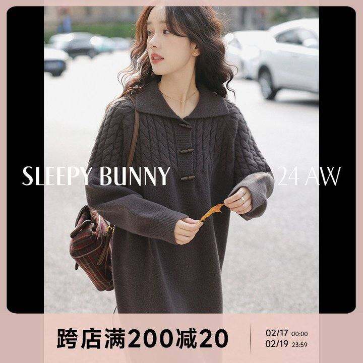 瞌睡兔 复古翻领毛衣连衣裙