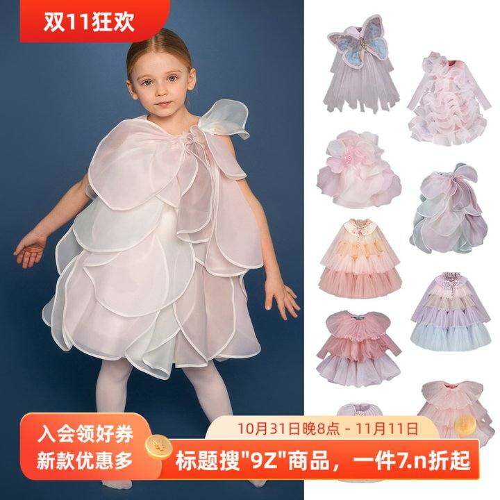 9Z 奶爸家!Nikolia AW24新款女童花朵立体蝴蝶薄纱礼服公主裙