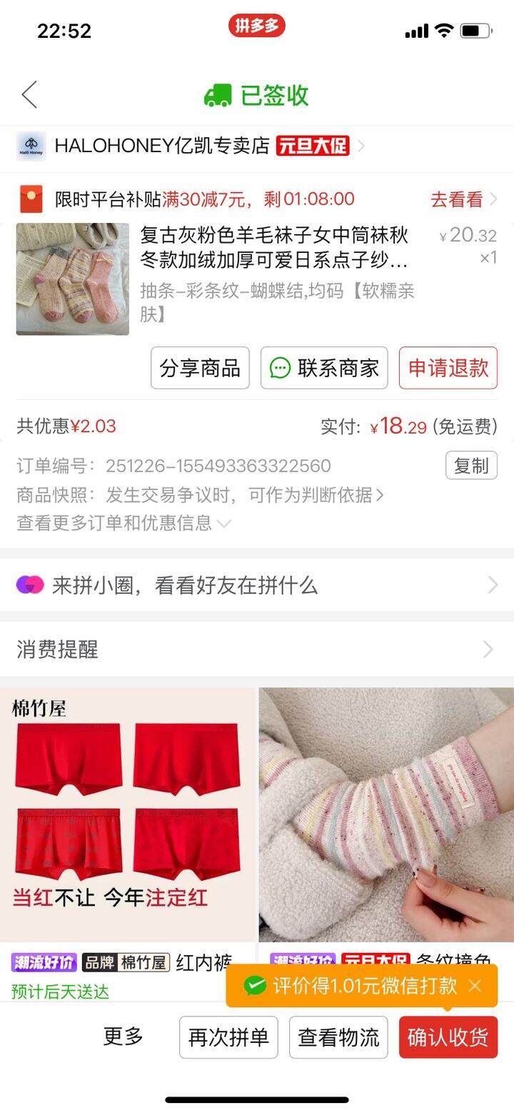 粉色袜子质量很好,毛线的,实体店估计要二十块一双了。