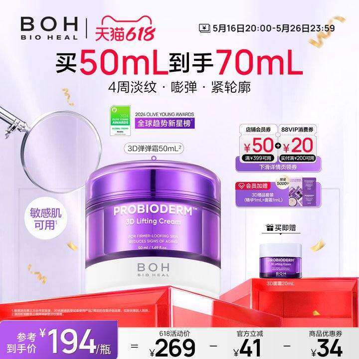 BOH百析珀韩国酵萃三维弹润紧致淡纹面霜50ml抗皱保湿淡纹
