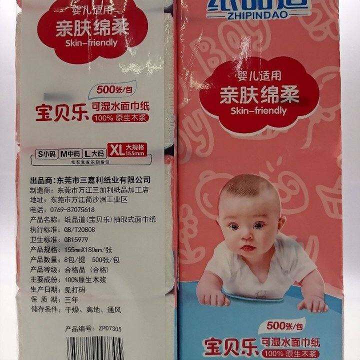 纸品道抽纸宝贝乐大号500张8包家用实惠装擦手餐巾纸可湿水面巾纸