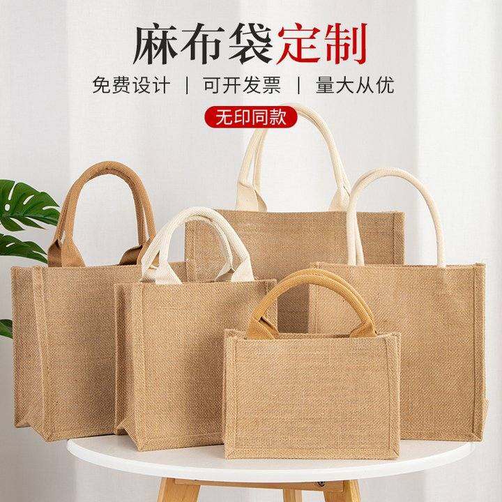 麻布袋定制logo时尚外出环保黄麻亚麻便当购物礼品袋帆布包手提袋