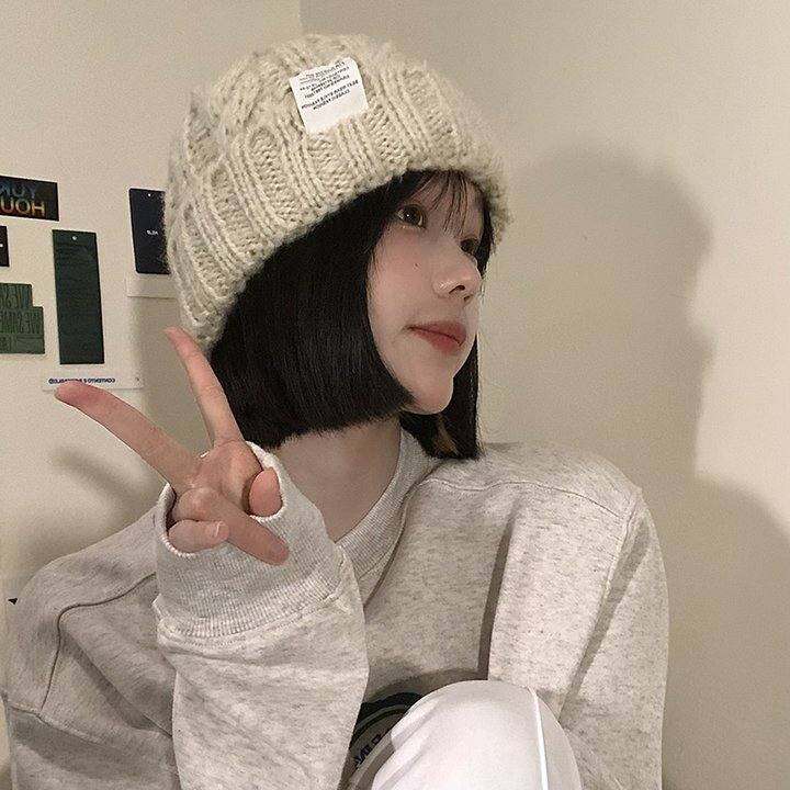 2024年帽子女粗针织毛线帽秋冬季百搭大头围绿色宽松ins潮显脸小