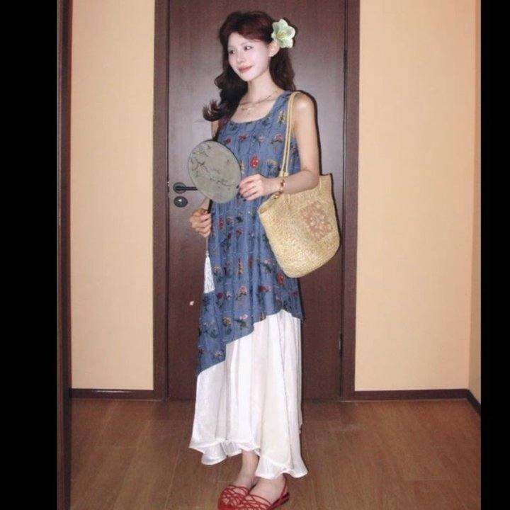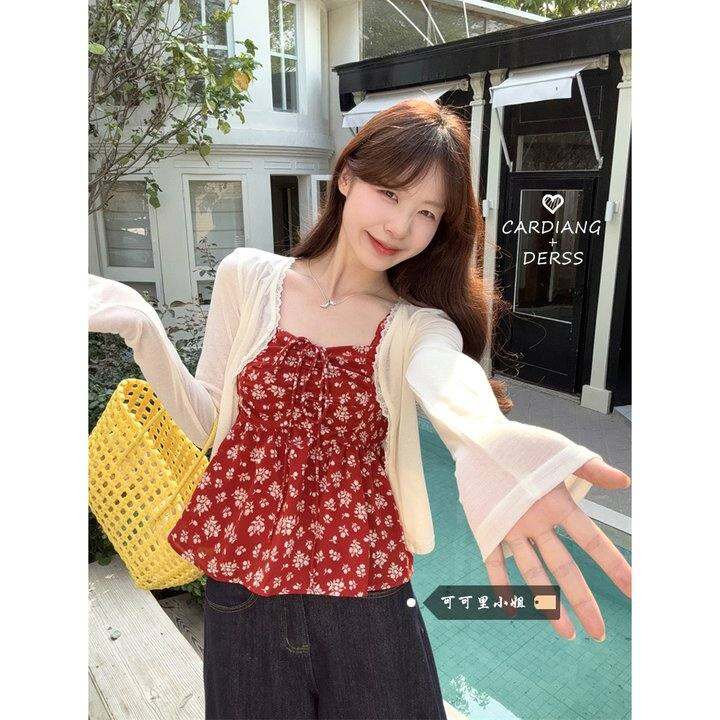 温柔风显瘦碎花吊带背心薄款防晒长袖开衫女2025夏季新款套装chic