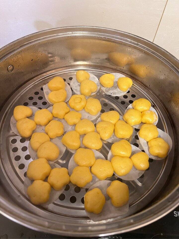 开始做辅食小馒头了,今天搞了个南瓜小馒头,一次成功!模具第一次用,一开始有点沾,抹了点油才行,不知道是不是这样用的