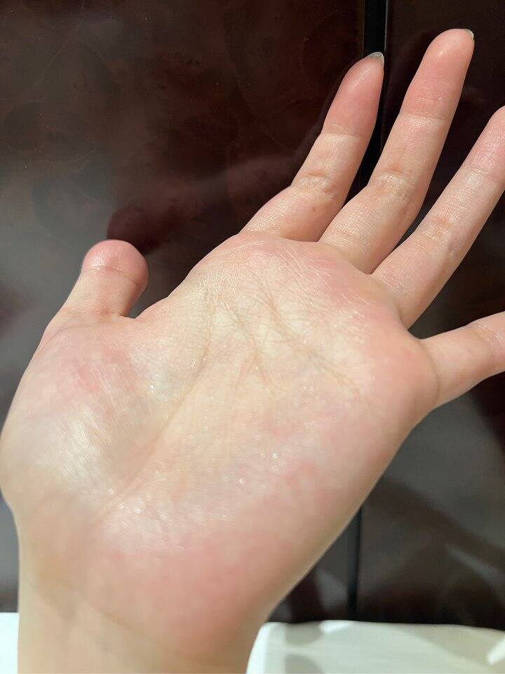 出差带了一个欧舒丹的润肤露小样,擦完发现带细闪的,手心一大片跟出汗了一样,我一开始还以为是不是盖子掉的,太离谱了