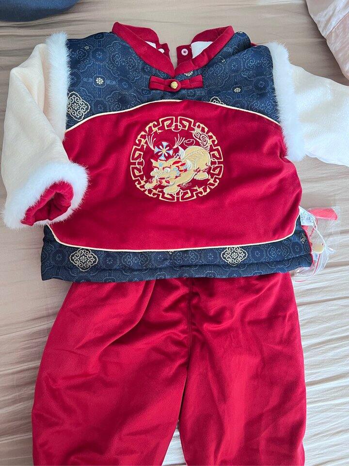 班喜迪的拜年服质量还不错,99一套,买了三套试穿,留了第一套