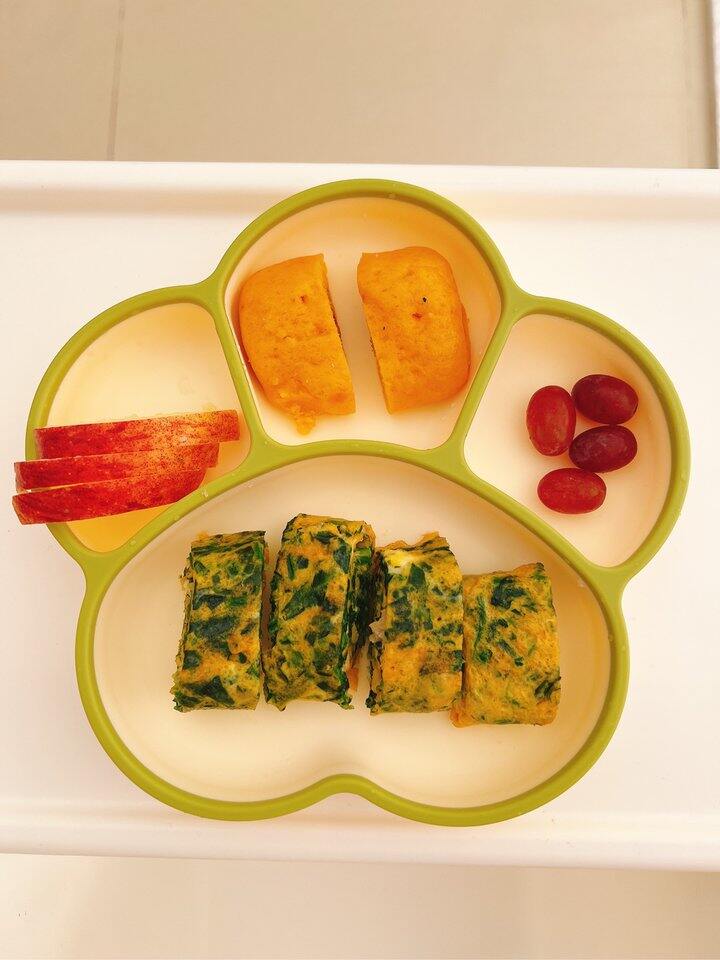 特地起来做厚蛋烧还摆了盘,然后娃一口不吃[哭笑]噗噗都吐出来了[哭笑]