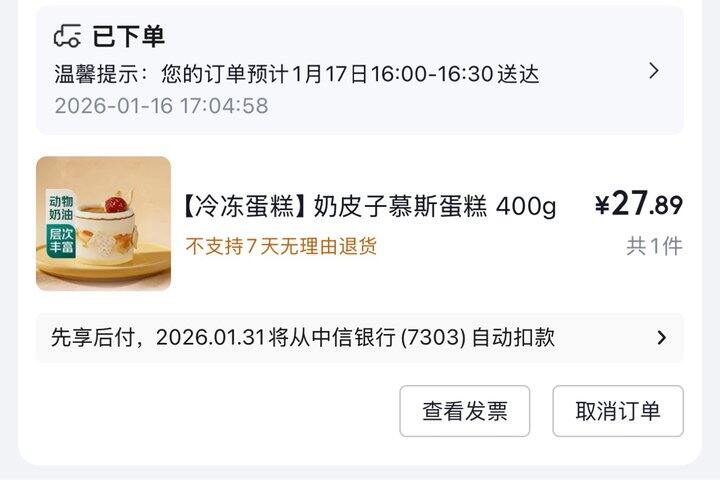 京东七鲜给送了券,27块多的奶皮子蛋糕!我之前关注的鲜京采的直销负责人的小红书,首发价还要39块9呢,这款评价挺不一的,待我周末来尝一下