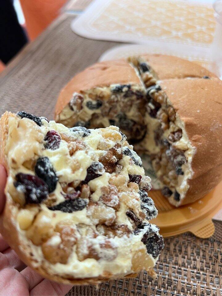 跟着路口姐妹买的西域麦尔斯奶酪包,里面奶油塞了好多好多,有点腻,早餐吃一块就够了!