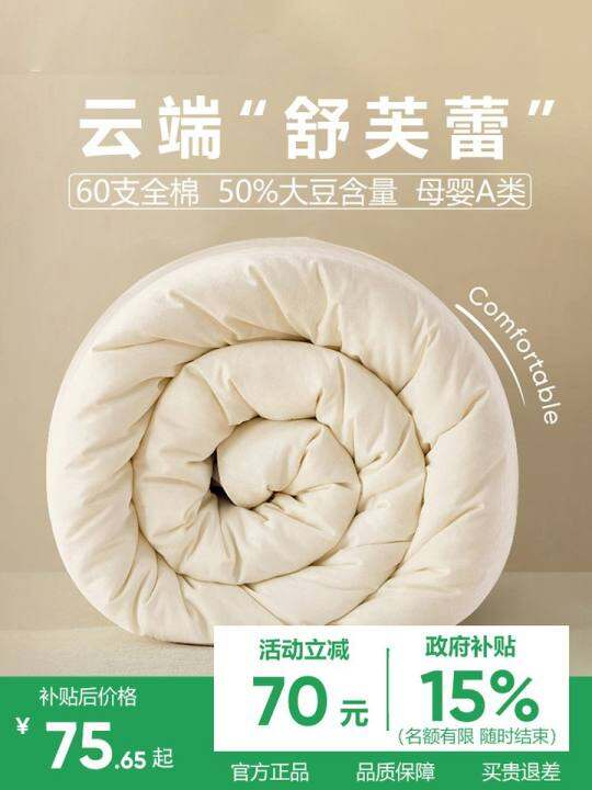大豆被真好,买的51%纤维含量的,好轻,又暖和,又能直接机洗,还是现代科技好啊,我把蚕丝被都丢开了