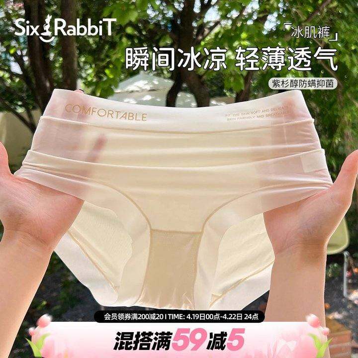 六只兔子内裤女冰丝无痕3A抑菌裆透气包臀速干中腰薄款三角裤