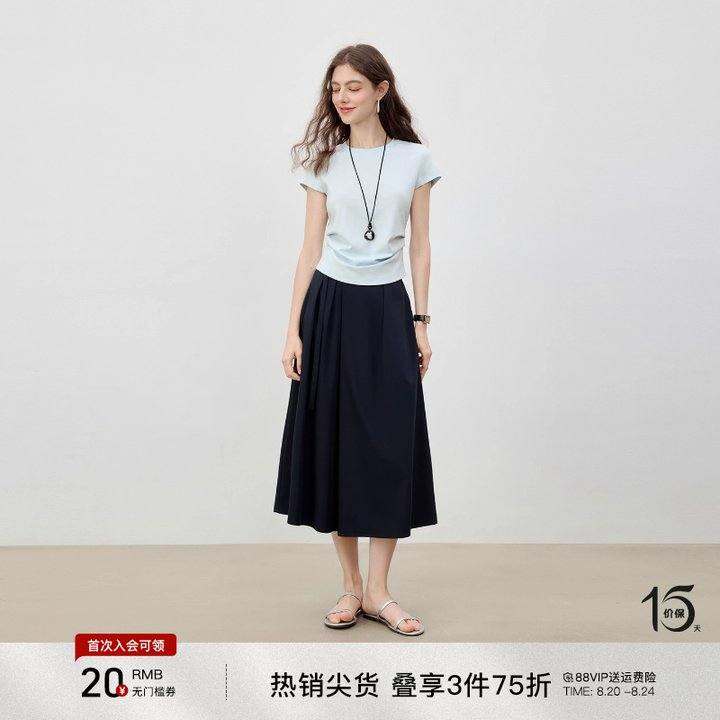 自巧小个子藏青色A字伞摆半身裙女夏季2025新款高腰遮胯显瘦半裙