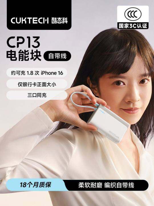 【充电宝3C认证】CUKTECH酷态科10000毫安CP13自带线充电宝33W快充小巧便携移动电源适用于苹果iPhone16Pro