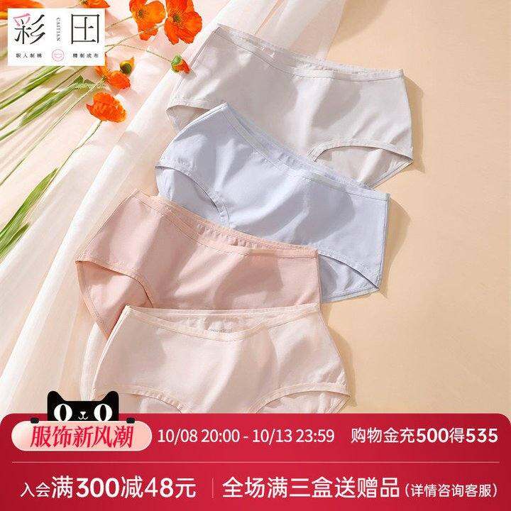 彩田内裤女秋季新疆棉质面料抗菌底裆可爱少女中腰纯色透气三角裤